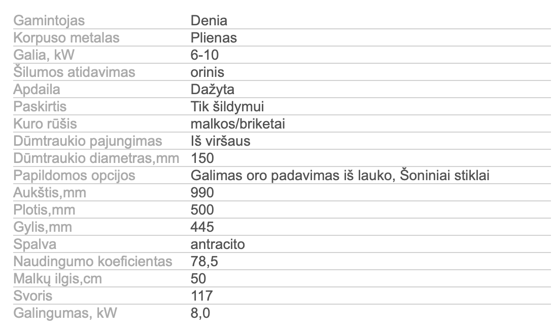 - Tinka malkos iki 50 cm ilgio;